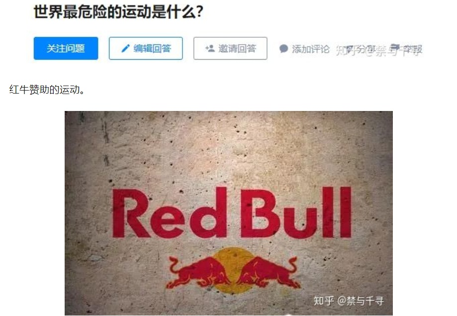 所以每当网上出现一段极限视频,如果有红牛Logo,网友就会释怀:“看到红牛我就放心了。”