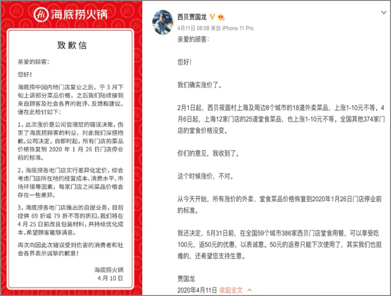 海底捞和西贝凭借涨价、致歉、再恢复原价的神反转,多次登上微博热搜,成为全民热议话题。