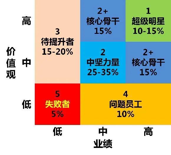 5类人员:业绩和价值观都不达标者——要明确淘汰与人员调整计划。