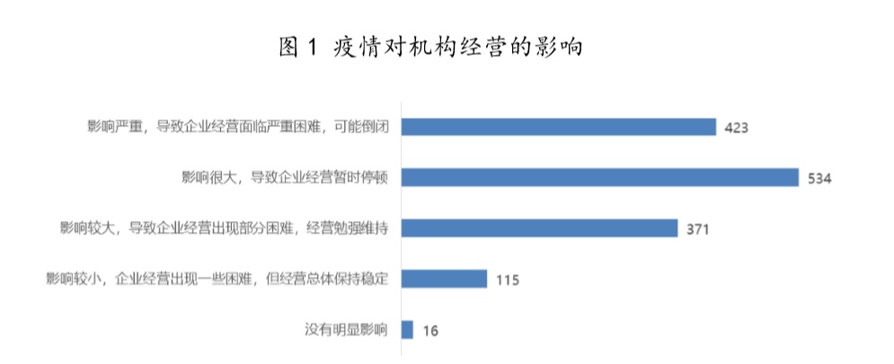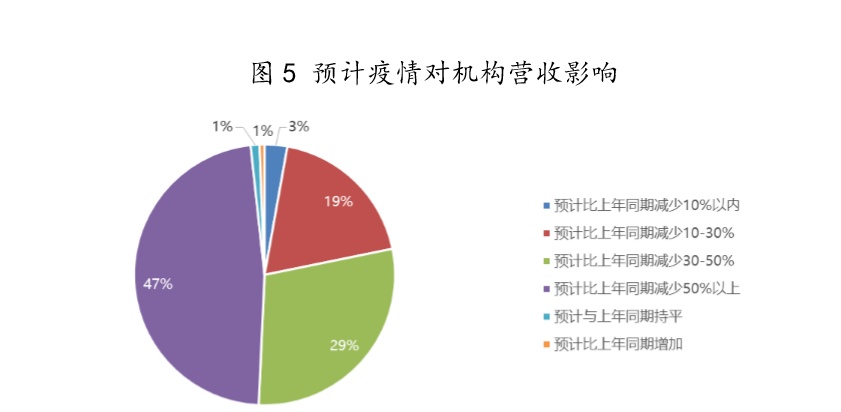 数据显示,此次疫情,超过90%的机构表示存在大的影响,经营存在部分困难或严重困难。29%的机构表示“影响严重”,导致机构经营面临严重困难;36.6%的机构表示“影响很大”;11%的机构表示疫情对经营活动没有明显影响。
