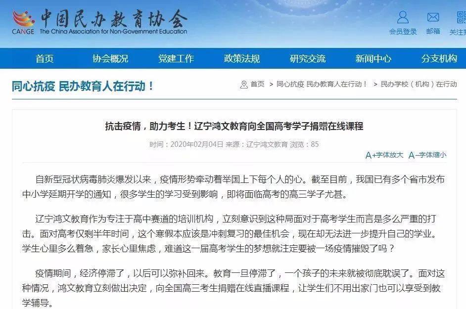 好未来方面表示,“所有面授老师已经过培训掌握线上系统和授课方式,同时针对线上教学的特点进行了反复磨课、练课、备课,全面保障线上教学的效果。”与此同时,好未来早前也设立了“1亿元抗击疫情专项基金”,其中8000万元用于教育专项,支持全国各地学生“停课不停学”。整体来看,好未来的策略是公益先行打响口碑,快速反应转型线上,推出原时段、原老师、原内容的线上课程来保证用户体验,减免线下用户流失,这其实是应对疫情危机的一个很好的例子。再看鸿文,创于2011年的鸿文高考一直以来聚焦于高中教育以及高考的针对性教学培训,通过自有的鸿道师范学院持续培训、输送、供应教培行业精英人才、产品服务。它的高中教育培训模式是以KIE教育理论体系——从知识掌控、学习主动性、外部环境等方面系统解决高中教育问题,并通过自研教材及教辅矩阵,针对性地攻克学习壁垒。当前鸿文高考有近200家在营在建校区,遍布十六省,师资与综合实力雄厚,在高中教学这一赛道,在品牌与规模上建立了壁垒,在疫情之下,鸿文做对了四点:其一,应对疫情同样快速反应,公益先行。在疫情发生之后,它向全国高中学生捐赠总价值7000万元高中阶段课程产品,获得大量好评,这相当于向全国高中学生普及了自身的课程产品与市场口碑。