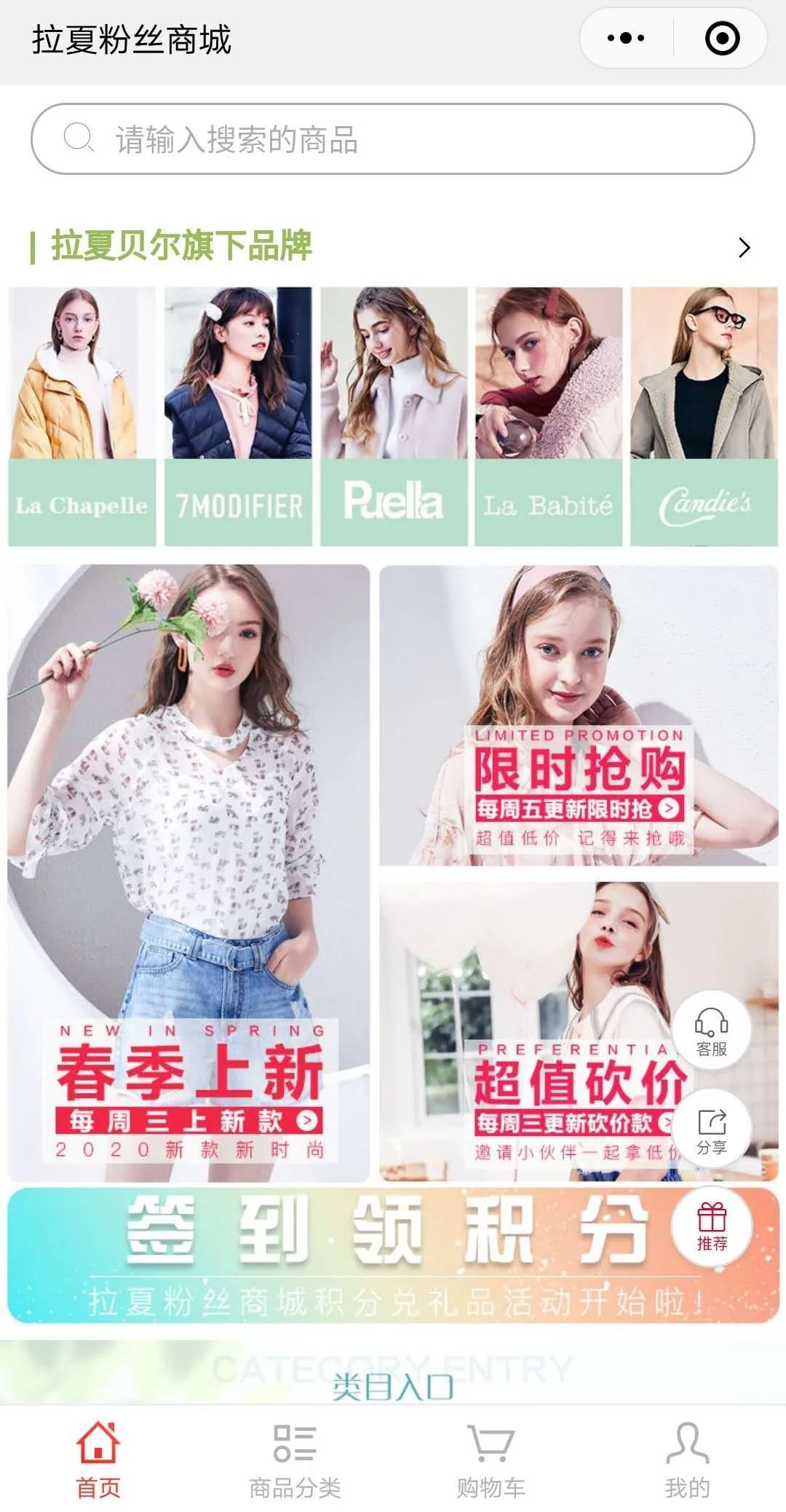 拉夏粉丝商城页面,截图自拉夏贝尔官方小程序