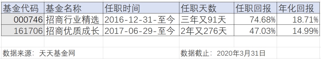 贾成东正在管理的两只基金:招商行业精选,任职3年出头,任职回报74.68%。招商优质成长,任职将近3年,任职回报47.03%。