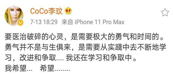 她还忆述了几次与李玟工作接触的经历,从其私下待人接物的态度,对其人品进行了认证“永远记得有一次金鹰节现场我想采访您,但那时候要准备上台了您就说晚点,我想着可能最后也会不了了之,结果等您表演结束后,就看见经纪人在后台找到我说可以采访了。真的好感激当时的您能放在心上,那好像是12年的事。再后来16年超女总决赛又见面了,您依旧那么热情阳光!所以,coco姐,阳光永远在!”