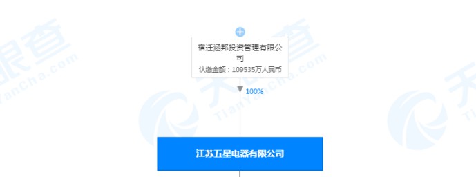 变更后,江苏五星电器有限公司大股东为宿迁涵邦投资管理有限公司,持股比例为100%。
