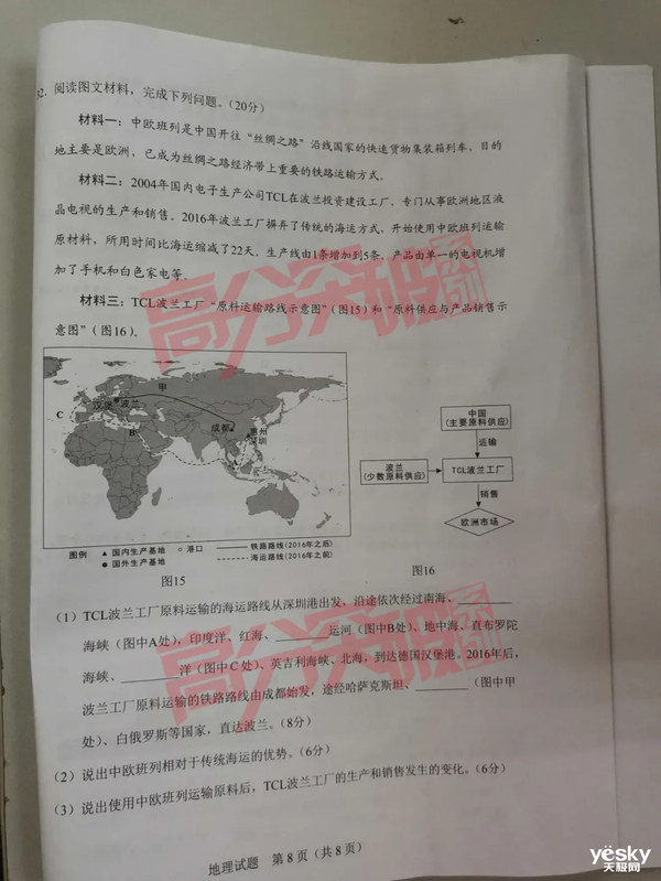 广东2020年中考7月20日开考,在这份测试全广东省初中毕业生知识水平的试题,TCL波兰工厂入选地理考题!