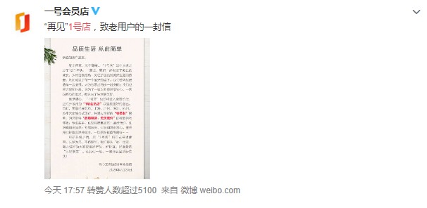 7月23日,电商平台“1号店”通过其微信公众号发布公开信称,“1号店”即将进入全新阶段,正式升级为“1号会员店”以迎接更好的自己。至此,“1号店”正式成为历史,“1号会员店”以崭新的面貌出现在人们的视野中。