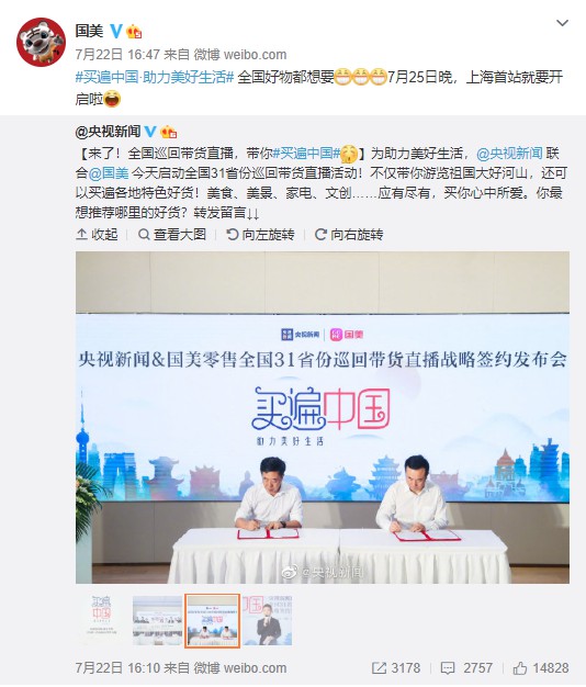 或许是因为尝到了“抱大腿”的甜头,国美与央视拥抱更加紧密,此次巡回直播活动开启的同时,国美与央视新闻合作再度升级,国美似乎已将央视新闻视为“最佳拍档”。