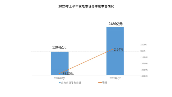 据《报告》介绍,第二季度我国家电市场零售总额达2486亿元,两倍于第一季度,同比增2.64%。对于家电市场来说,二季度期间有两个关键的增长节点——五一小长假和618。以京东为代表的电商平台向这两个时间节点倾斜了巨量资源,发起了全家电行业的大促活动,激发了全民的消费热情。