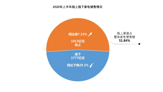 正如凯度(Kanta)发布的全球新冠疫情消费者追踪报告所说,“电商购物主流化”将是疫情后改变全球消费世界的三大趋势之一。从本次发布的《报告》中也可以看出,线上渠道成为上半年家电行业最倚重的渠道,第一次拿下家电零售的半壁江山,占比达到51.84%,同比增长了7.23%。