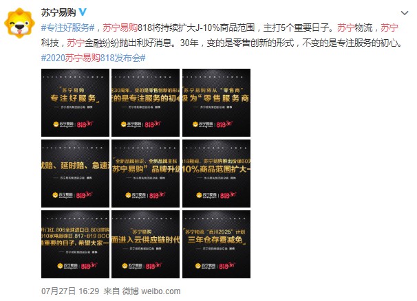 7月27日,在苏宁818三十周年庆云发布会上, 苏宁易购集团高级副总裁顾伟宣布,苏宁将未来十年定义为“场景零售服务十年”,由“零售商”升级为“零售服务商”。尽管只是加了“服务”二字,苏宁很可能将会“脱胎换骨”。