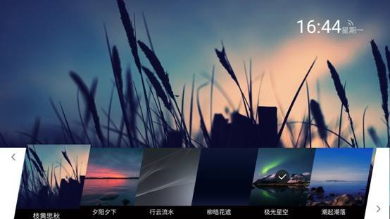 其中“经典模式”内置壁纸包含6类主题,分别是“枝黄思秋”、“夕阳西下”、“行云流水”、“柳岸花遮”、“极光星空”、“潮起潮落”。用户可任意选择设置自己喜欢的壁纸。个性、品味、舒适、简单,优秀的UI设计总是让你的心情更加的愉悦。