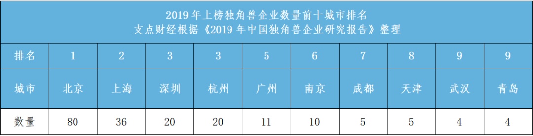 相比2018年有5只独角兽企业的成绩,武汉在拥有独角兽企业数量上排名相对落后,从2018年的第7位滑落到了第9位。