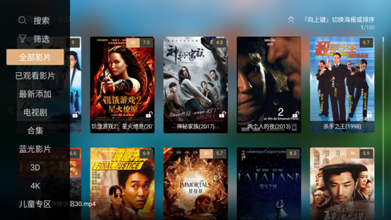 海报墙系统还支持一键轻松续播等便捷功能,并且支持本地影片库设置首页分类向导,可以对本地影片一键分类、智能搜索,支持“以上映时间排序、以字母顺序排序、以豆瓣评分排序”等多种方式结合选片。海报墙影片列表下还可以进行本地影片库分类向导、排序以及智能搜索功能。