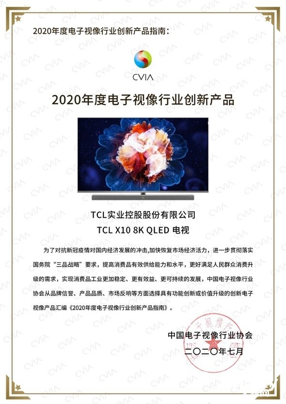 近年来,TCL以产品+技术驱动在智慧显示产业上积极布局,产品涵盖智能家居、智慧教育、智慧厨房、智能安防等领域,涌现出大批出色的智慧科技产品。特别是在显示领域,TCL拥有华星光电这样顶尖的面板企业,自主研发推出的量子点电视引领整个彩电行业技术革新。凭借在创新显示技术领域的实力,在研究发布会上发布的《2020年度电子视像行业创新产品指南》中,TCLC8至臻QLEDTV和TCLX108KQLEDTV两款产品均入选,成为本届峰会的明星产品。