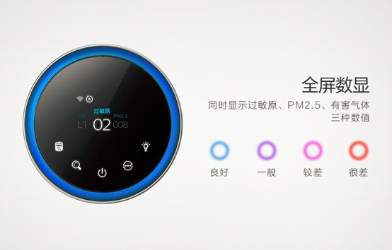飞利浦空气净化器AC3836还搭载了AeraSense灵智感应技术,通过每0.1秒检测一次空气质量,自动调整净化模式,时时刻刻为室内空气“量身定制”。面板可实时显示PM2.5/有害气体/过敏原三大空气质量问题,并用四种不同的灯光颜色代表不同的空气状况,直观而自然。