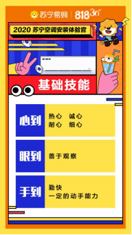 记者获悉,过去两年,苏宁在北京、上海、南京等各大城市开展空调安装体验官活动,引发社会各界广泛参与。报名用户覆盖各行各业,他们或为各领域极客,有特殊的才艺或本领;或为苏宁长期用户,对苏宁服务信任有加;或被服务工程师的辛苦感动,想要感受他们的工作环境。基于此,今年818,苏宁再度启动空调安装体验官招募活动,经过严格筛选的体验官将跟随苏宁服务工程师一起实地体验,通过辅助工作及观察记录,感受苏宁的“专注好服务”。