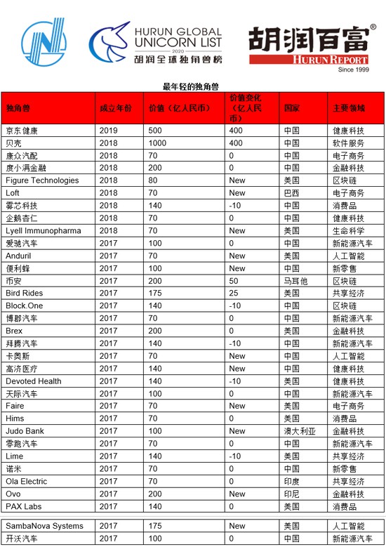 8月6日消息,胡润研究院近日发布的《苏州高新区·2020胡润全球独角兽榜》 显示,在上榜的586个独角兽企业中,中美两国占据了全球独角兽总数的八成。其中,京东集团旗下的京东健康获全球最年轻独角兽。