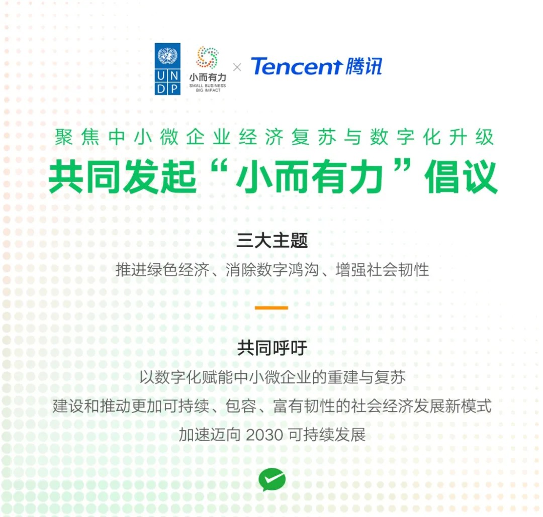 8月6日消息,《电商报》获悉,今日,联合国开发计划署与腾讯微信发起“小而有力”倡议,着力在公共卫生事件过后,以数字化赋能中小微企业的重建与复苏,建设和推动更加可持续、包容、富有韧性的社会经济发展新模式,加速迈向2030可持续发展。