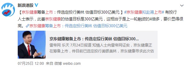 目前,阿里健康市值超过300亿美元,巧合的是,京东健康的估值同样是这个数字,或许有着对标阿里健康的意思。