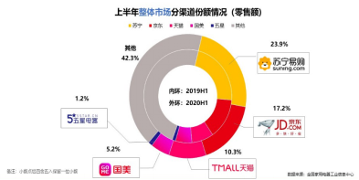 7月29日苏宁宣布,创业30年来已经累计销售20亿台家电。此外,根据中国家用电器研究院和全国家用电器工业信息中心权威发布的《2020年中国家电行业半年度报告》,苏宁再度以23.9%的市场份额占比雄踞家电全渠道第一。