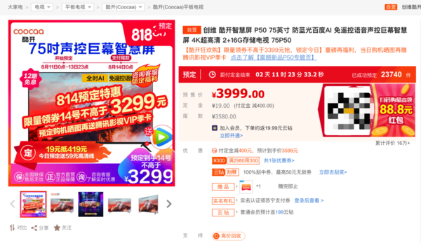 如果你想要“超大屏电视”又要“性价比”选择75英寸的P50是不会错的啦!