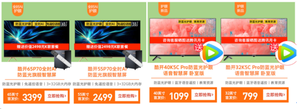 说到这里,要买哪款电视你是不是心里已经有答案了!要说高品质性价比,酷开的这几款产品还真的是做到了极致,尤其是他们有别人没有的“光学防蓝光”!