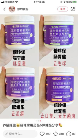 在功能性消费品板块,倍珍保已经于今年4月份上线了5款产品。上线仅仅4个月,产品基于严谨的科学理论基础及明显的功效,便已经建立了优质的用户口碑,并且实现了大量的用户自然裂变。其中,用于缓解宠物泪痕症状的产品“眼维乐”以及缓解宠物口腔异味问题的“优宠亲”已经成为各大社群上的爆品,是各大宠物KOL推荐的首选;而帮助猫咪缓解应激问题、舒缓猫咪情绪的抗应激产品“喵宁康”在线下亦深受医院及猫舍渠道喜爱。