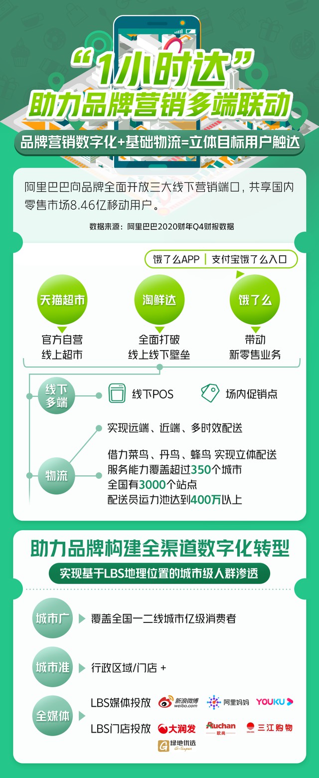 根据双方签订的合作文本,伊利一站式入驻上述三大零售平台之外,在线下市场,也将利用淘鲜达数字云店(线下POS机)、以及在大润发、欧尚等大型商超场内促销点,最终通过菜鸟物流体系,实现商品在全国主要城市一小时到家配送。