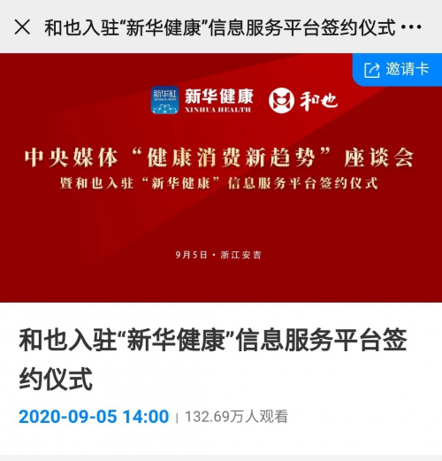 2020年9月5日,安吉和也大健康产业园热闹非常,处处洋溢着喜庆之气,要问这为什么,和也人的朋友圈会告诉你们答案——和也正式签约入驻“新华健康”信息服务平台。