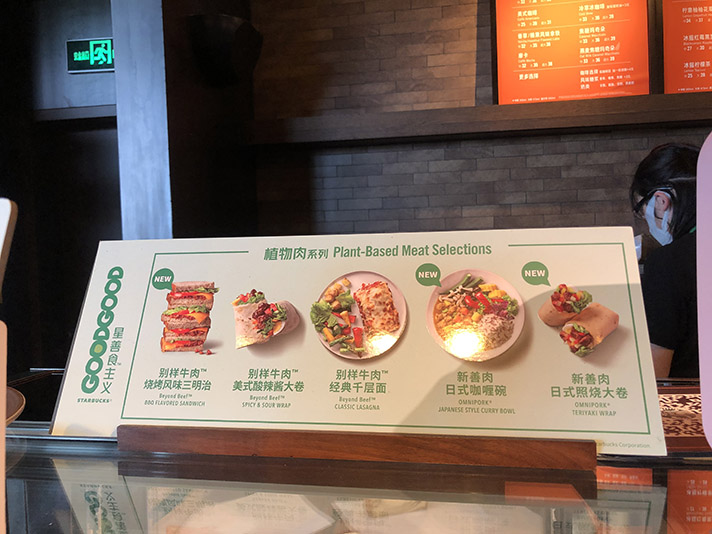 今年4月,星巴克推出植物肉系列新菜单。(图片来源:时代财经 石恩泽/摄)